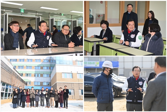 점검단은 2월 12일 기준으로 다소 부족했던 현장 상황이 개교 일정에 맞춰 깔끔하게 마무리될 수 있는지를 직접 확인했다. 이들은 학교 진입로와 통학로를 시작으로 운동장과 체육시설, 그리고 교실과 급식실을 포함한 1층부터 4층까지의 교사 건물 내부 시설을 꼼꼼히 훑으며 학생들의 안전을 저해할 요소가 없는지 집중적으로 점검했다.