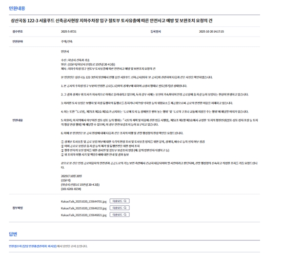 2025년 10월 20일(월)에 "시장에게 바란다"에 민원을 올렸습니다.