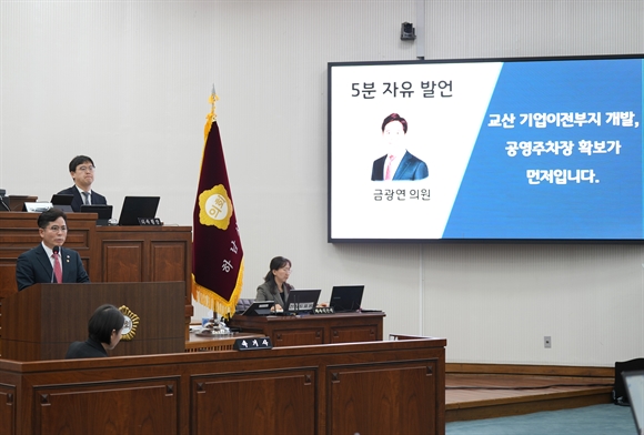 끝으로 금의장은“교산 기업이전부지 개발이 또 하나의 민원 지역이 아닌 시민과 공존하는 공간으로 남기 위해서는 주차 문제부터 바로잡아야 한다”며 발언을 마무리했다.