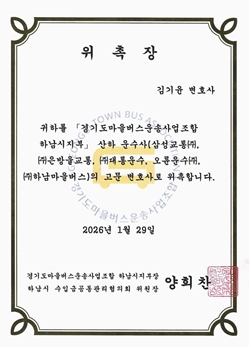 하남시 마을버스지부장 양희찬은 “이번 고문변호사 위촉을 통해 법률 리스크를 예방하고, 종사자 보호와 서비스 안정성을 동시에 강화할 수 있을 것으로 기대한다”고 말했다.